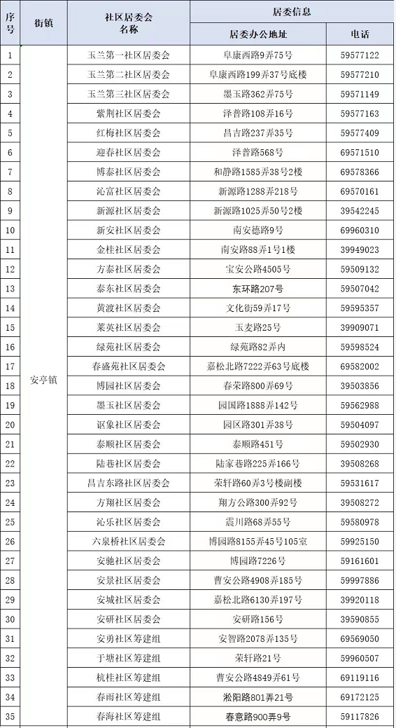 安亭镇封控期间各居村委会保供热线