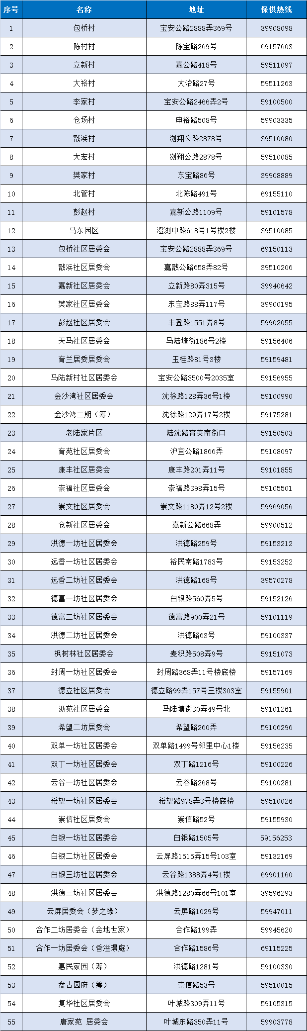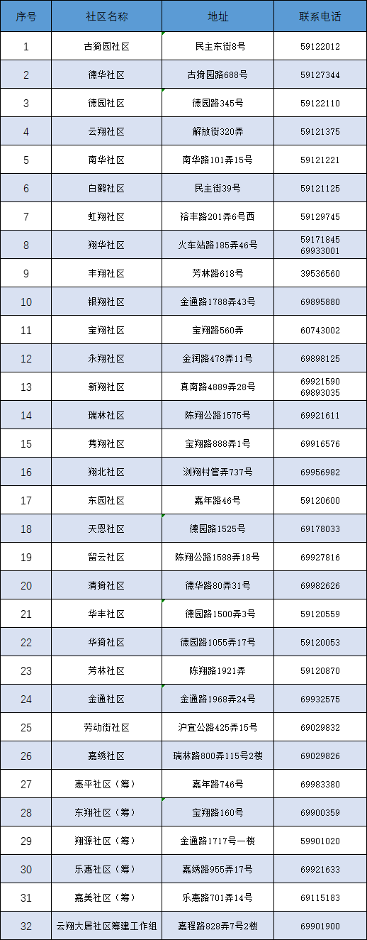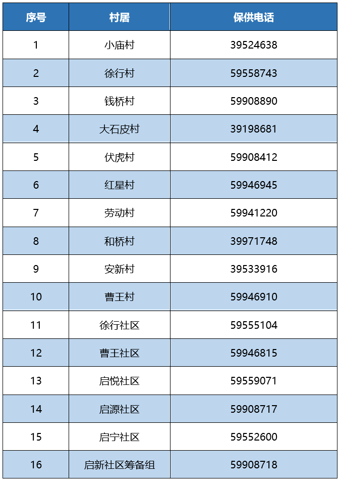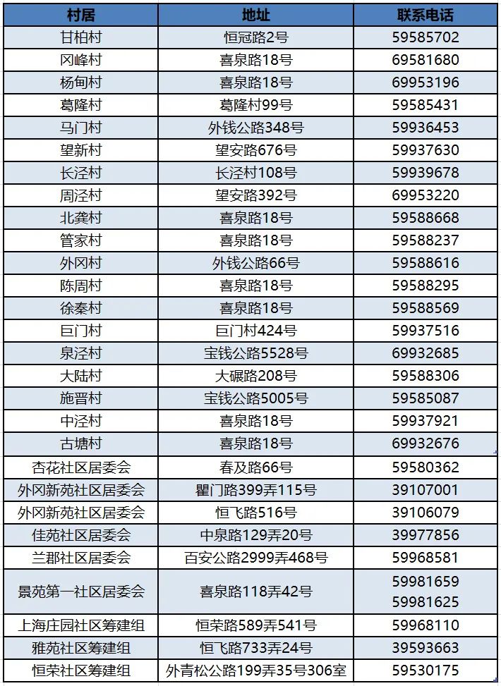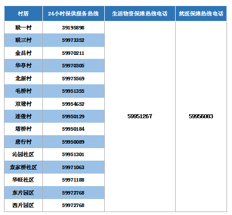 南翔镇封控期间各居村委会保供热线