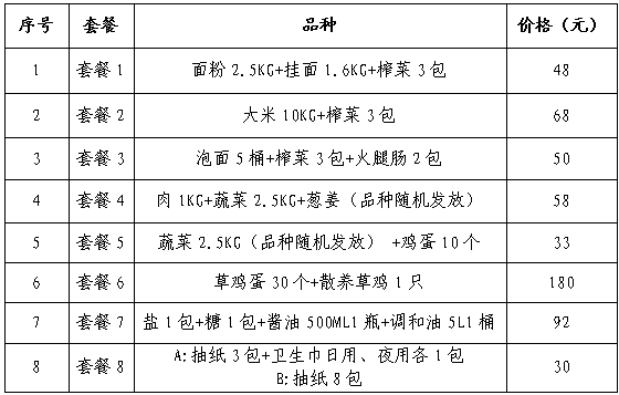 供应品种:169元保供随机套餐