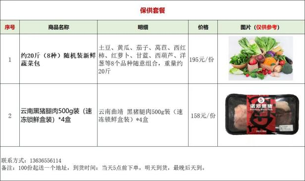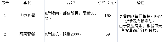 供应品种:保供套餐(蔬菜或猪肉)