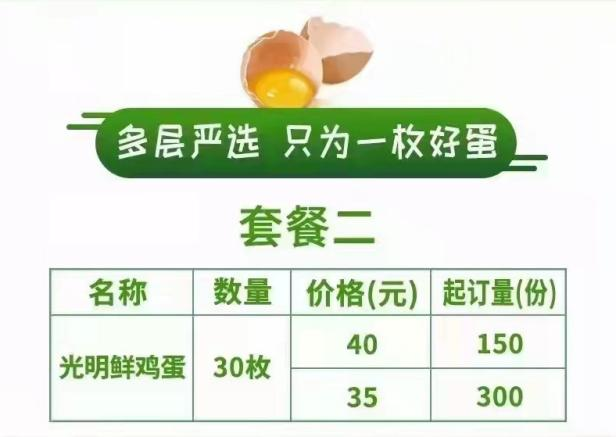九蔬一果套餐、光明鲜鸡蛋套餐
