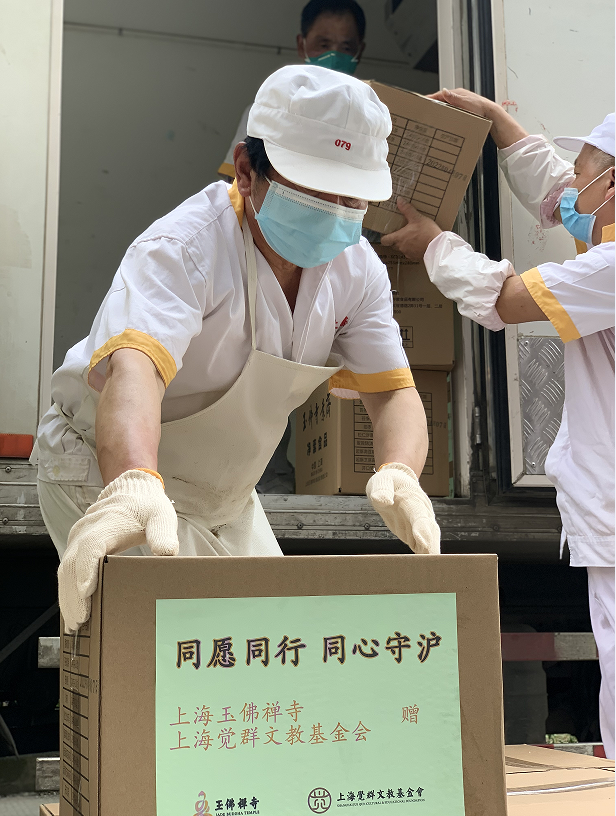 同心守“沪” 玉佛禅寺为驰援上海医护人员及志愿者送去素斋糕点