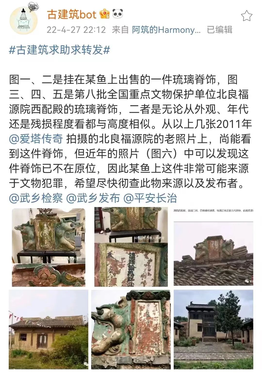 微博网友@古建筑bot发文表示,