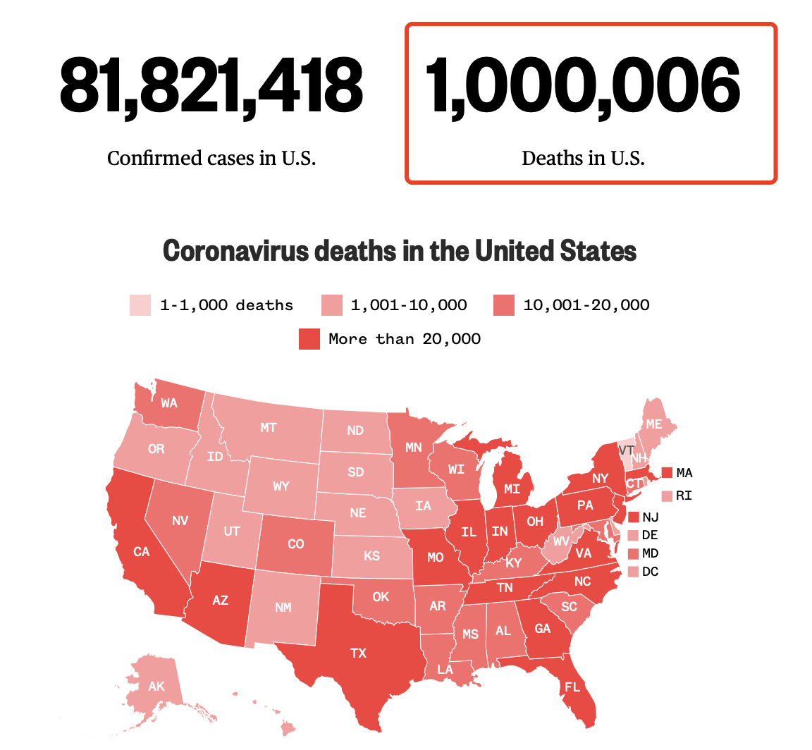 100万死亡,相当于美国第10大城市——加利福尼亚州圣何塞(San Jose)的所有人口全部蒸发。