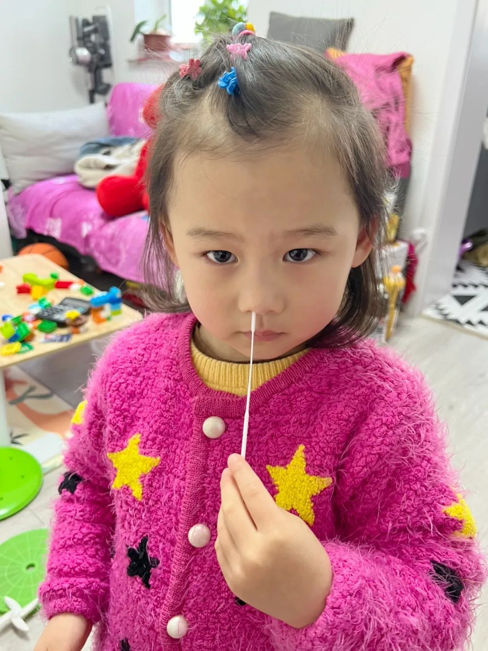从最初的不适应、打喷嚏,到现在我们自己来做抗原。