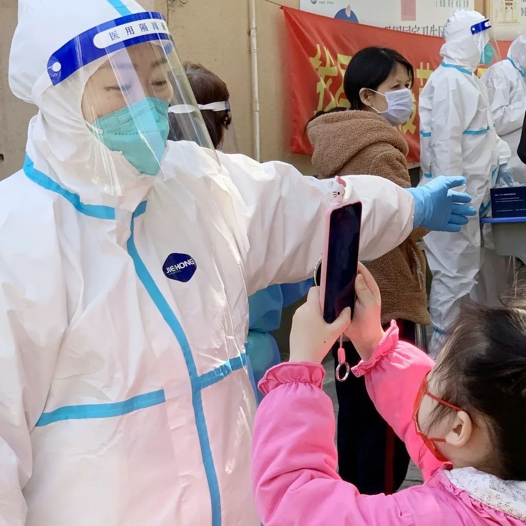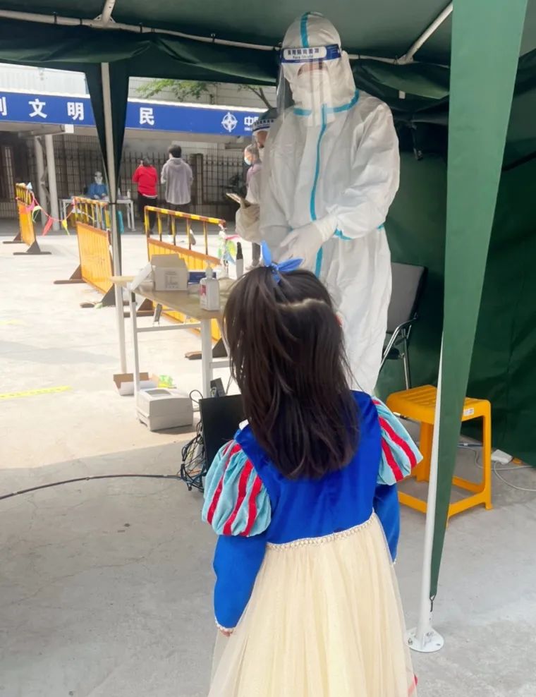 我们在做核酸时,就能见到爸爸妈妈了。她们天还没亮就早早出门,有时候半夜才能回来。