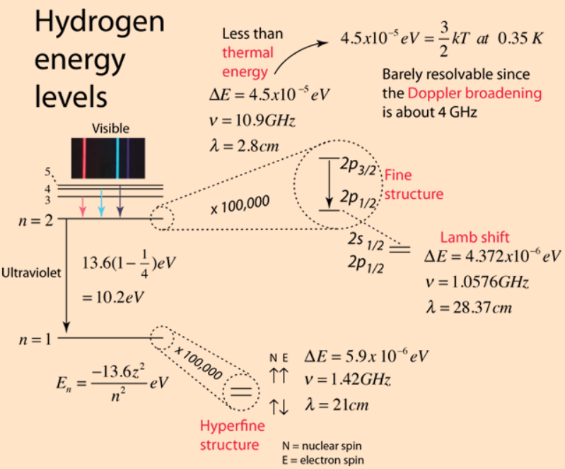 氢原子的精细结构,超精细结构,以及兰姆位移,图片来自HyperPhysics