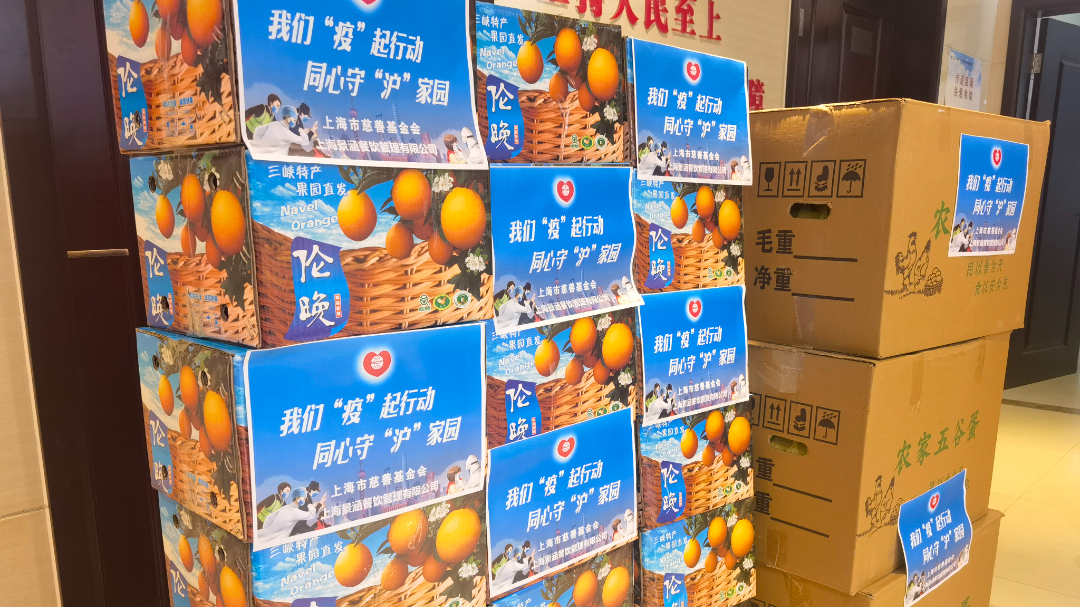 上海景涵餐饮有限公司捐赠220箱橙子、23箱土鸡蛋,为非常时期的养老机构老人和困难群体补充营养,提高抵抗力。