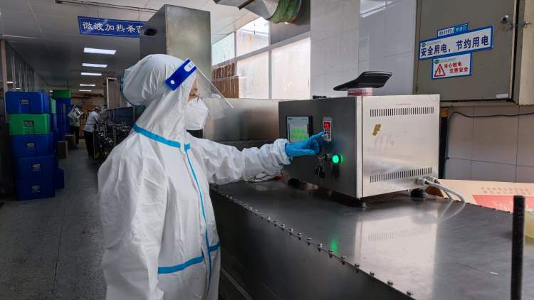 为了完成保供任务,师傅们每天凌晨两点多就起床工作,从确定计划,验收加工,到烧制、分装、灭菌、运输,环环相扣,保障工作稳定高效运行。
