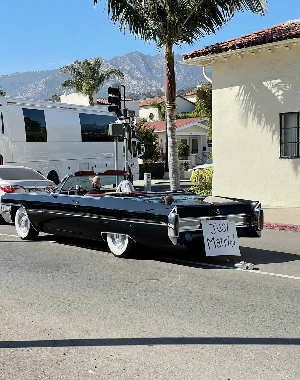 据悉,考特尼·卡戴珊和男友在周日整理好了法律文书,成为了法律意义上的夫妻。当天,考特尼穿白色吊带紧身短裙,头戴白纱,特拉维斯一身黑色西装,两人在法院前举行仪式,随后乘坐一辆复古敞篷老爷车离开,车尾挂有“Just Married”字牌。