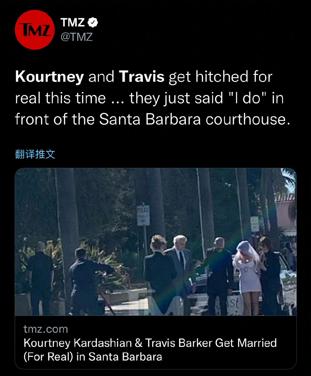 今年4月初,外媒就曾报道考特尼·卡戴珊和特拉维斯·巴克在拉斯维加斯举行了“试跑”婚礼,但当时尚不清楚两人是否办理了结婚证。