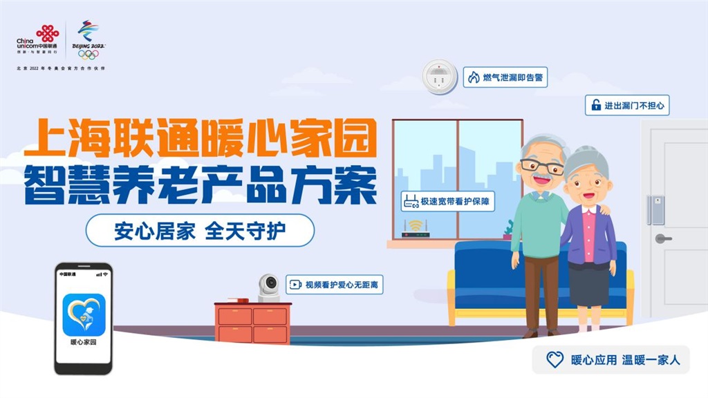 上海作为中国经济中心和重要的国际金融中心城市之一,老龄化问题尤为凸显,位居全国一线城市首位,需要居家养老的比例更高达90%。上海联通发布的“暖心家园”以居家社区场景为重点进行数字赋能,为银发家庭提供家庭养老院式服务,针对老人居家安全、老人健康、生活和精神娱乐等,提供多端数字化养老产品,打造虚拟数字化养老院。