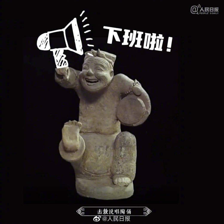 魔性文物表情包也是人们争相“云刷”的对象。这些文物,本身表情就有点呆萌,配上点睛之句,让人忍俊不禁。高呼“下班啦”的击鼓说唱俑、突然开悟的红陶人面像、堪称吃货大胃王的胡人俑陶座灯、心态超好的彩绘胁侍菩萨……文物表情包远比手机上的图标生动有底蕴。