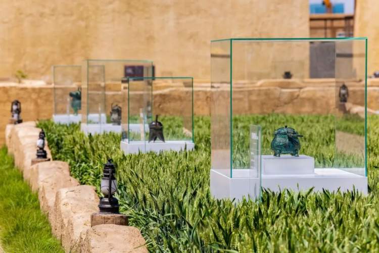 “麦田里的博物馆”,就是把文物请到麦田里进行展示,当然,这里的文物是仿制品。活动是由河南博物院联合河南各地12家博物馆共同精选出39件珍贵文物的仿制品,置于当地某文旅景区的麦田里展出,吸引了眼球,也通过别样的方式讲述了文物故事。