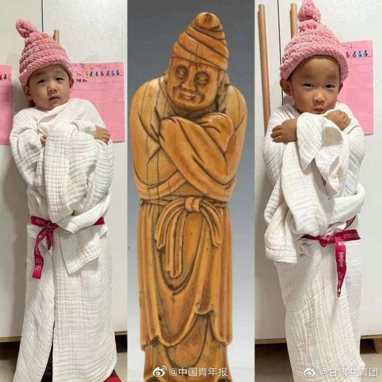 孩子们稚趣的造型,跟端严的文物两相对照,显得童趣盎然。幼儿园负责人表示,通过活动,可以让孩子们更加关注文物,发现历史的魅力,浸润在文化的海洋中。