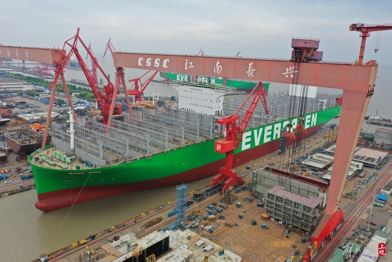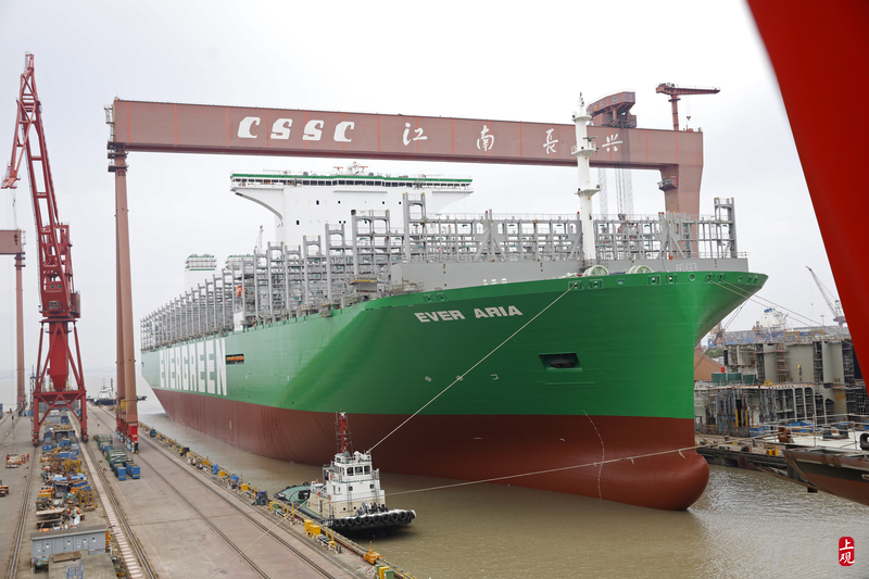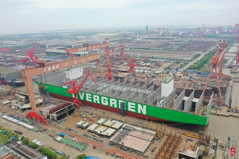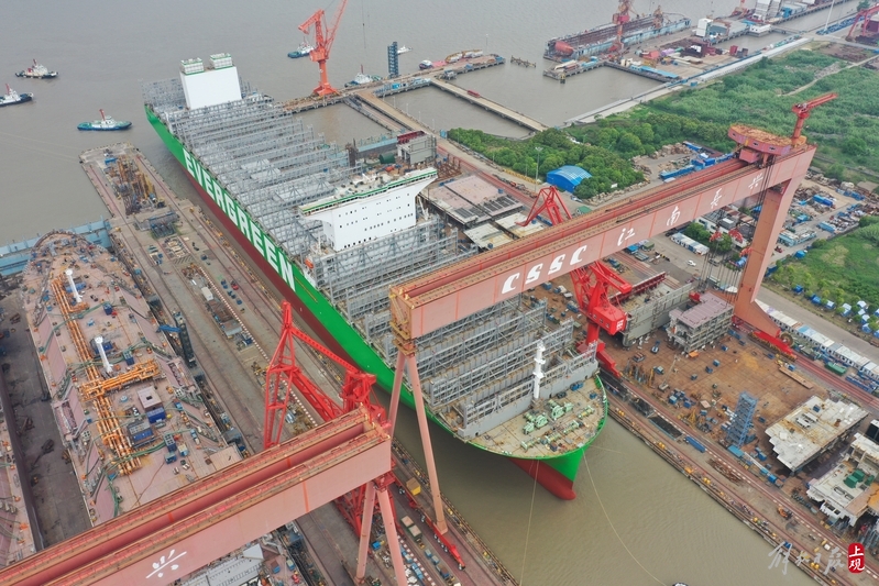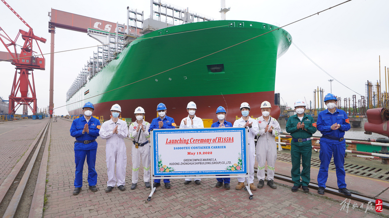 2022 年5月19日,中国船舶集团旗下沪东中华造船传出喜讯:该公司建造的全球最大装箱量24000TEU超大型集装箱船2号船在长兴造船基地顺利出坞。