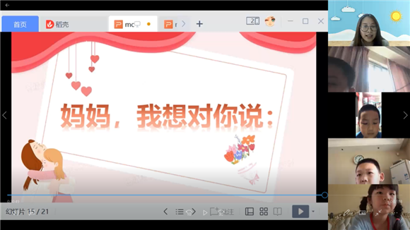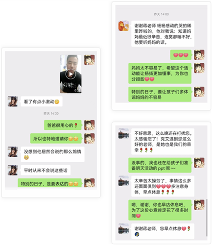 三位被疫情隔离在外已经两个月没有见过自己孩子的家长,通过云端视频的方式,给孩子带来了特别的寄语;一位在外地工作的爸爸特地通过此次活动,向在家照顾两个孩子的妻子送去了寄语和感恩的视频;还有一位在疫情期间刚生育二胎宝宝的妈妈,因为照顾小宝,对于大宝的关爱有所减少,母子关系在孩子居家学习中变得特别紧张,妈妈也借助这个特别的活动,对孩子说了心里话。