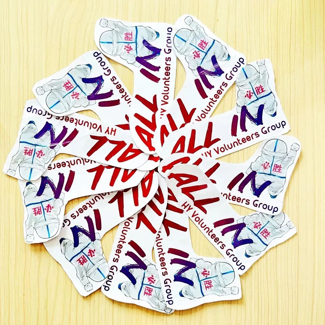 因为工作时大家都穿着厚厚的防护服,很难区分各自所在小组,于是有人提议在衣服上做标识来区别各组。很快,一个响亮的队名诞生了——ALLIN。金懿介绍,这个队名取自谐音“全阴”的意思。组里的其他志愿者甚至在当天晚上就设计好了队徽。