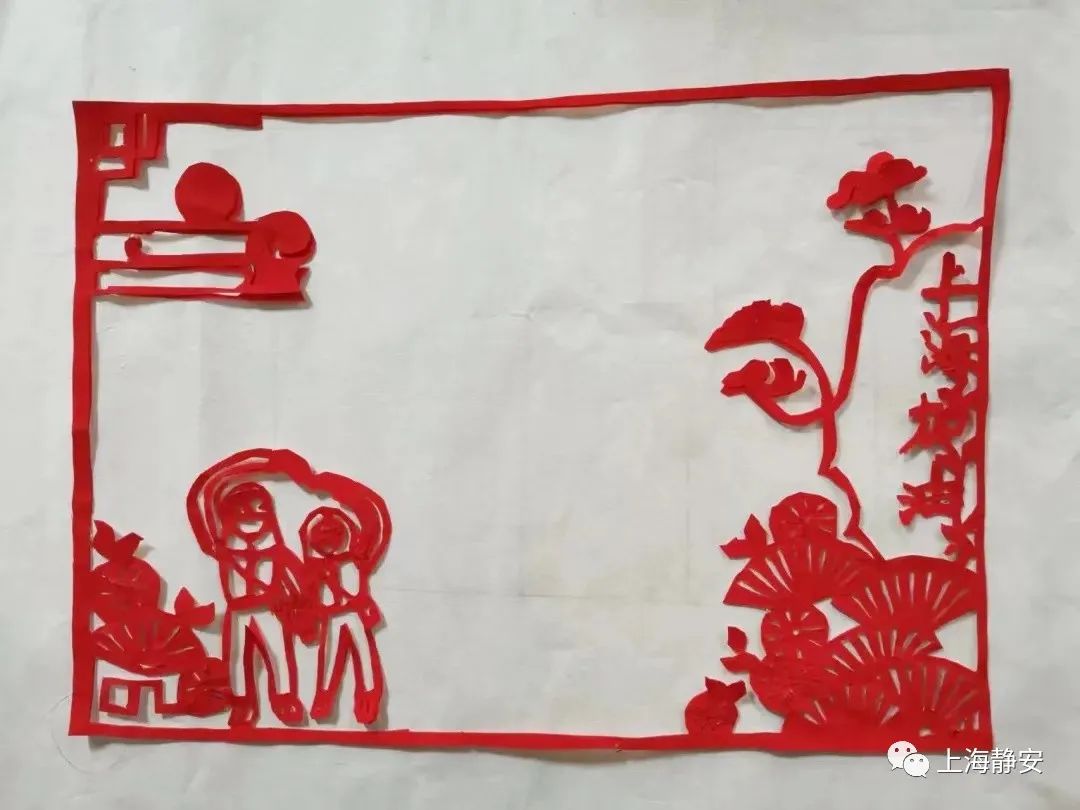 此外,林玲还看到,自己的队员敖佩芳与儿子共同参加志愿者服务,母子同心,为守护一方平安,作出爱的奉献。为此,林玲创作剪纸作品,对他们表示敬意和感谢。