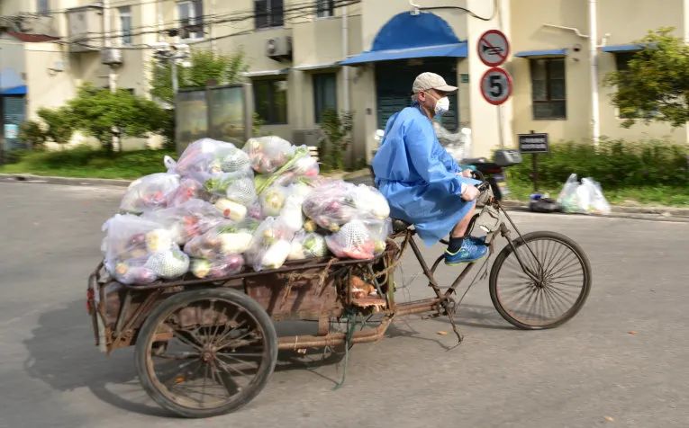 逐一分拣,细心打包,配发到户,居民们的“菜篮子”由他们守护。往来穿梭的小电驴是他们的忠实坐骑,不管是刮风下雨,还是烈日炎炎,总不能阻挡他们的坚实脚步。