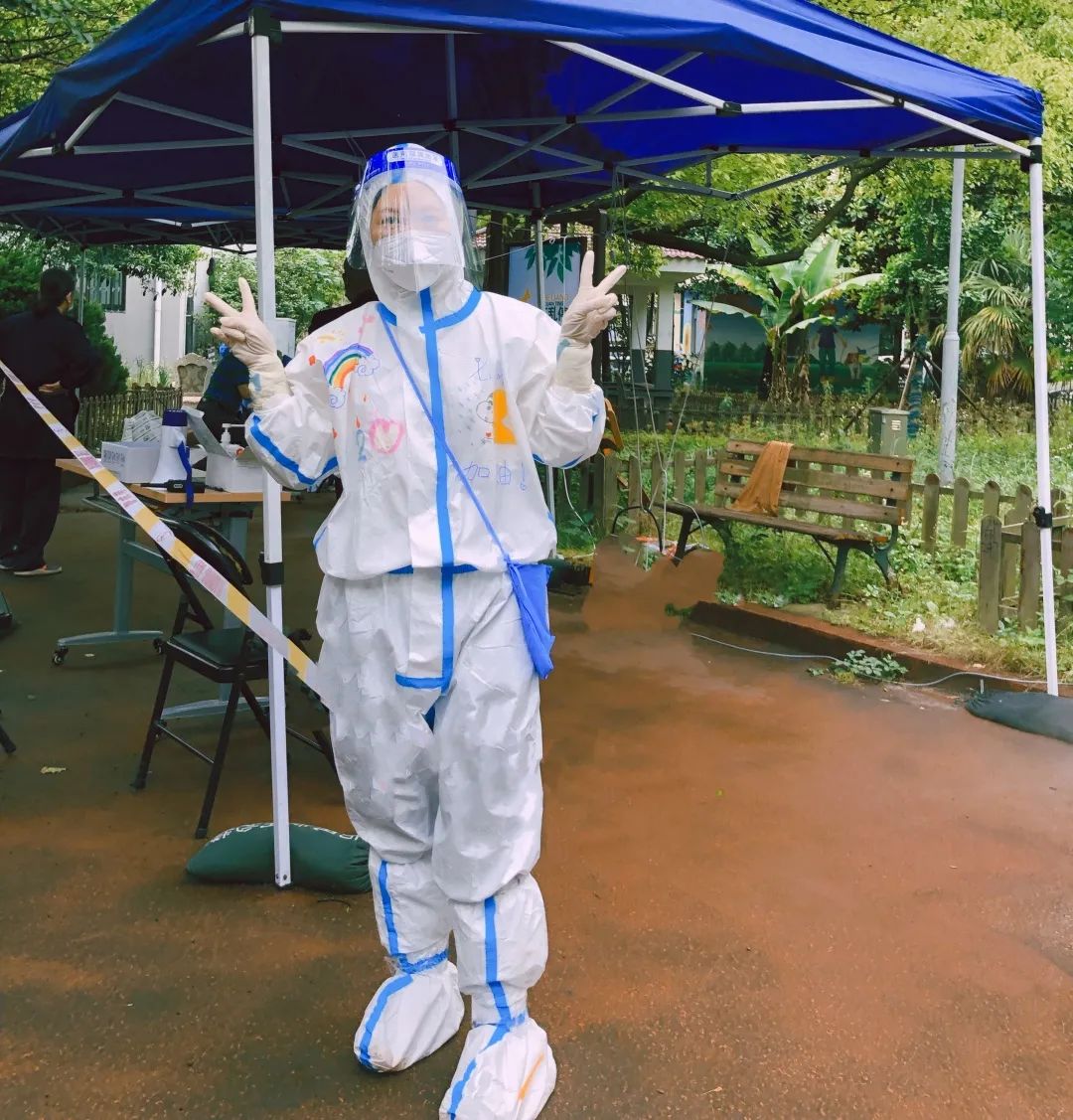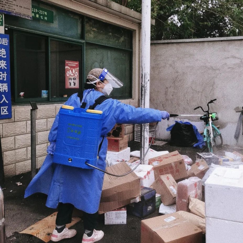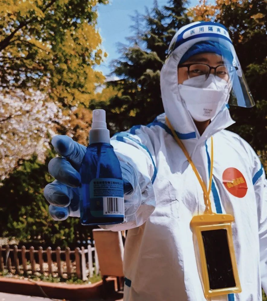 每天穿着防护服,负重20多公斤消杀桶,对小区快递、垃圾桶、核酸检测点、封控片等重要区域进行全方位无死角的消杀,把那些看不到的危险和隐患灭于无形之中。