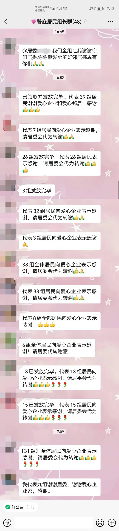 据介绍,沿海丽水馨庭在本次疫情期间形成了各级志愿者队伍。小区层面分为核酸志愿者、抗原志愿者,物资志愿者以及配药志愿者,各个楼组又组成3-6名楼组志愿者队伍,包括物资分发等,其余的还有各类分散型志愿者,庞大的志愿者队伍,确保了小区在疫情中的各类保障。