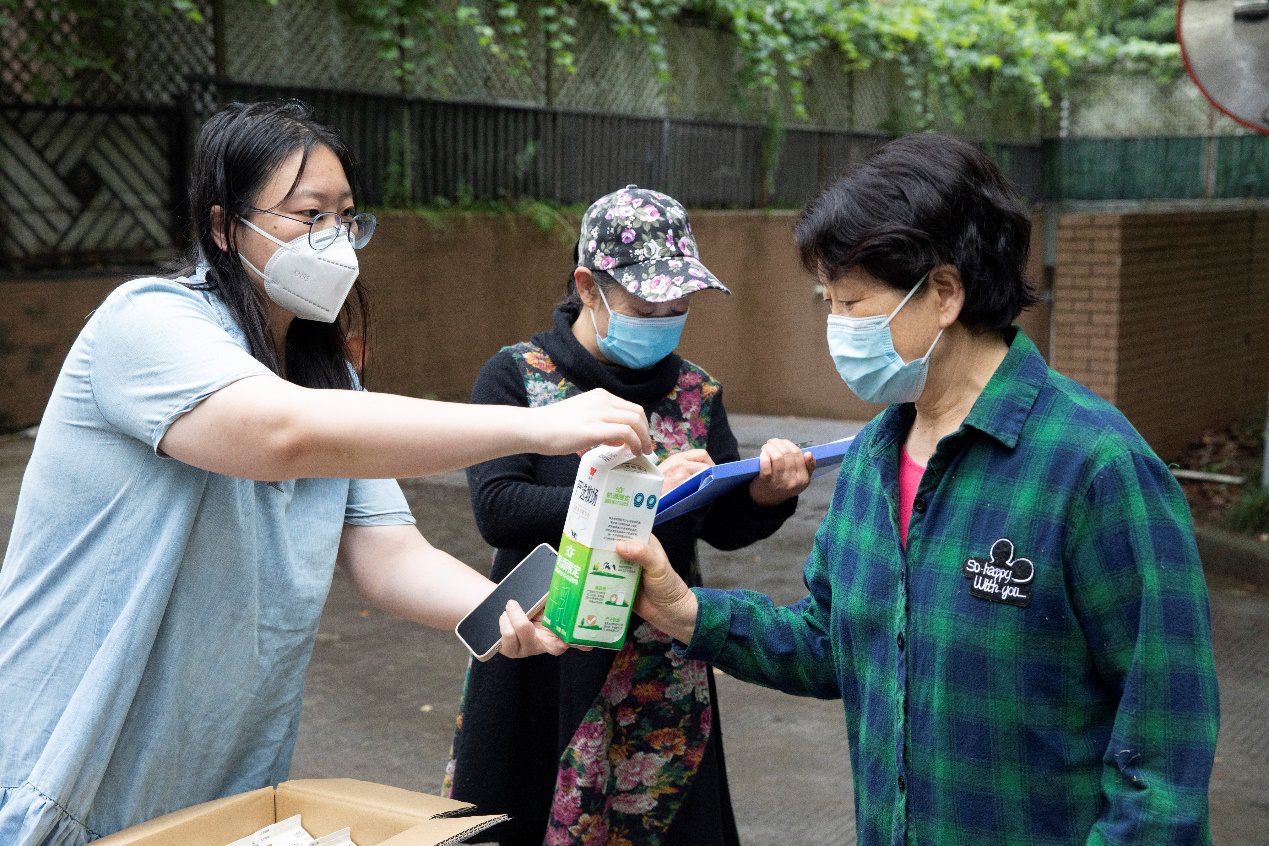 “每次看到他们穿着闷热的防护服,非常心疼。”张女士说,自己作为团长有时候会觉得挺辛苦,但一想到这些志愿者的付出,自己便没有了烦恼。“我应该可以做的什么,以表达对他们的感谢。”于是,她联络了公司,希望可以给小区志愿者免费送一点牛奶,这个想法得到了公司的认可,并且扩大范围,全小区每户一盒。