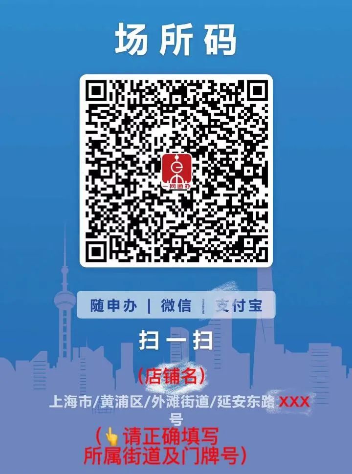 黄浦区市场主体可从“随申办”黄浦区旗舰店获取场所码申请视频和操作手册或者登录“上海市黄浦区行政服务中心”微信公众号或者扫描下方二维码可查看具体操作指南,申请时请务必确保填写的场所名称、地址、类别与实际情况完全一致。