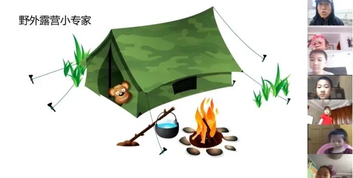 在“我是探险王野外露营小专家”活动中,小朋友们跟着野外露营达人一起学习了如何选择露营地、露营地功能区域划分、常见露营装备的使用和注意事项等知识。系统的讲解配合老师的线上示范,让小朋友们实实在在体验了一把露营达人的感觉。