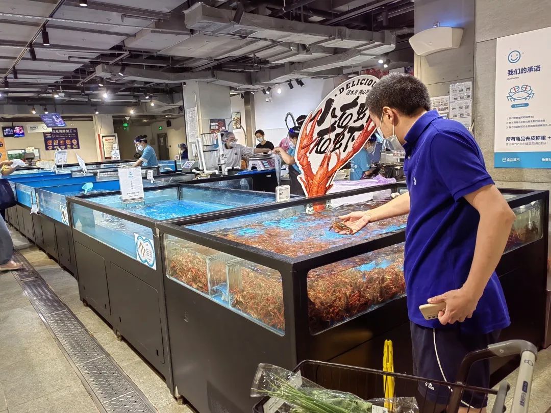 6月3日上午10点,记者在盒马鲜生城中店看到,市民按照超市指引,持72小时核酸检测阴性报告,在入口处经由“数字哨兵”扫码核验后顺利入店。门店内,货物供应充足,市民有序选购。“我很喜欢吃小龙虾,打算买个两斤回家做十三香小龙虾吃。”蔡先生说,“门店内的小龙虾个头大,品相好,一斤30多元,比较亲民。”