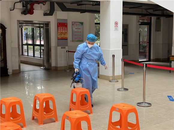 同时物业人员进教室消杀。