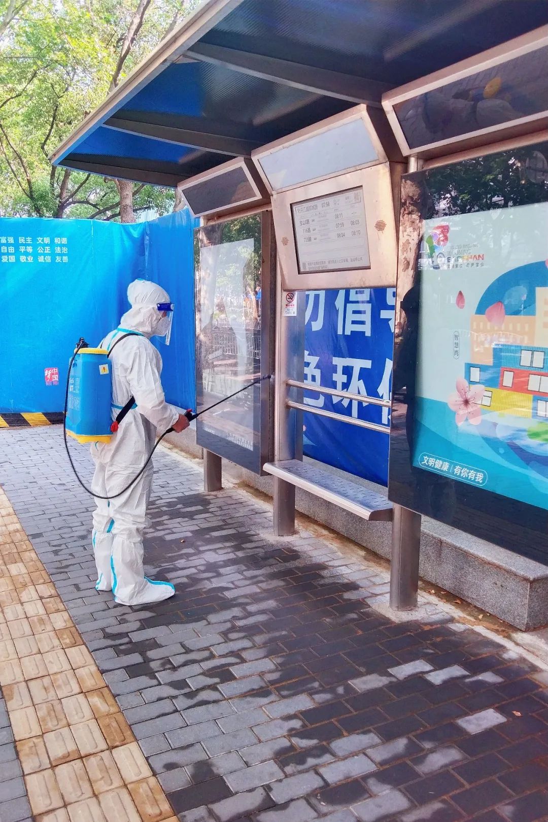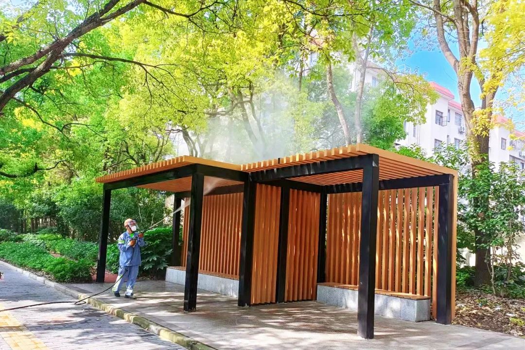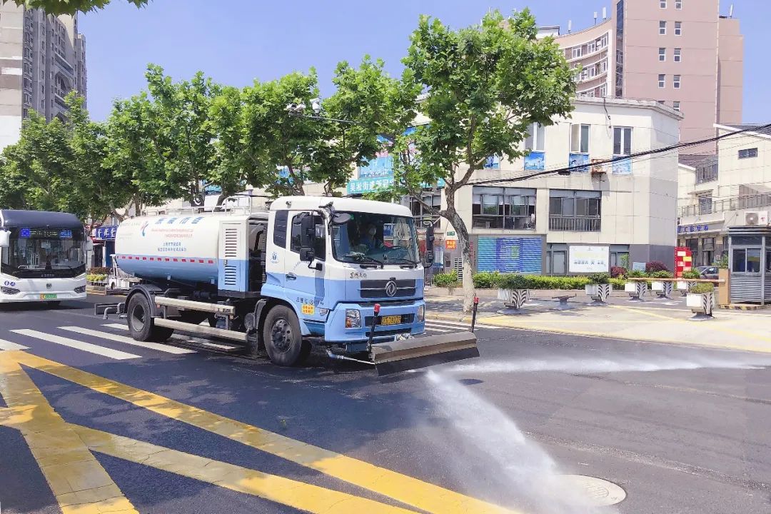 在前期“大冲洗”的基础上,东晨公司继续排查短板盲区,将常态化保洁与精细化保洁相结合,把冲洗保洁范围从主要道路往两侧延伸,重点加强商圈、沿街商铺、菜场周边等薄弱部位的冲洗整治。公司“保洁—市容”一体化作业力量迅速集结,在辖区内全面推进中小道路沿街、背街小巷、绿化隔离带、树穴墙角、快递柜周边等大扫除、大清理,及时清除积存垃圾;严格落实消杀规范和技术要求,持续加强对沿街废物箱、城市家具及公厕进行深度清洁消杀。