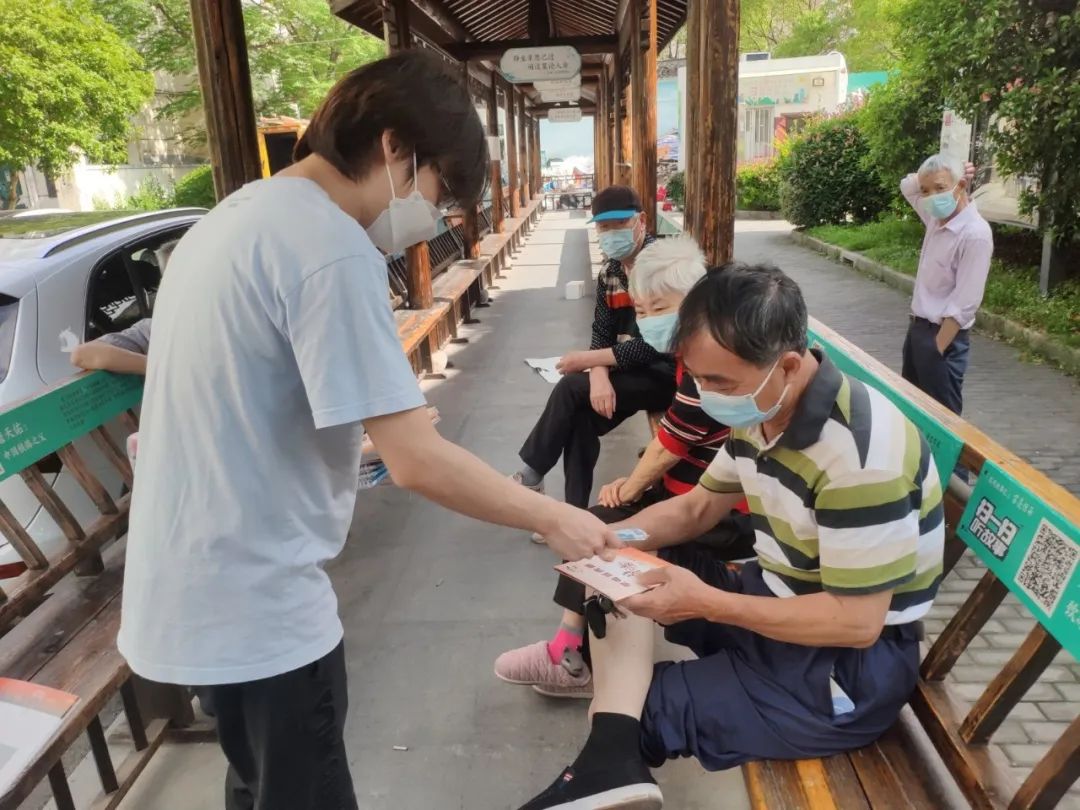 而在新泾镇的刘四居委会疫苗接种点及虹康绿地休闲广场核酸检测点上,新泾镇平安办的工作人员和禁毒社工忙碌的身影随处可见。他们纷纷走到居民身边,发放禁毒宣传册、宣传材料、宣传品,还耐心地讲解毒品知识,营造了浓浓的禁毒宣传氛围。