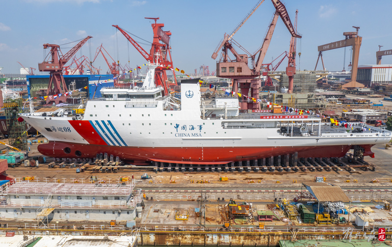 2022年7月8日,我国首艘具备深远海测量能力的专业海道测量船“海巡08”在中国船舶集团有限公司江南造船成功下水。这将是我国规模最大、综合能力最强、设备设施最先进的新一代大型专业海道测量船,测量能力达世界领先水平。