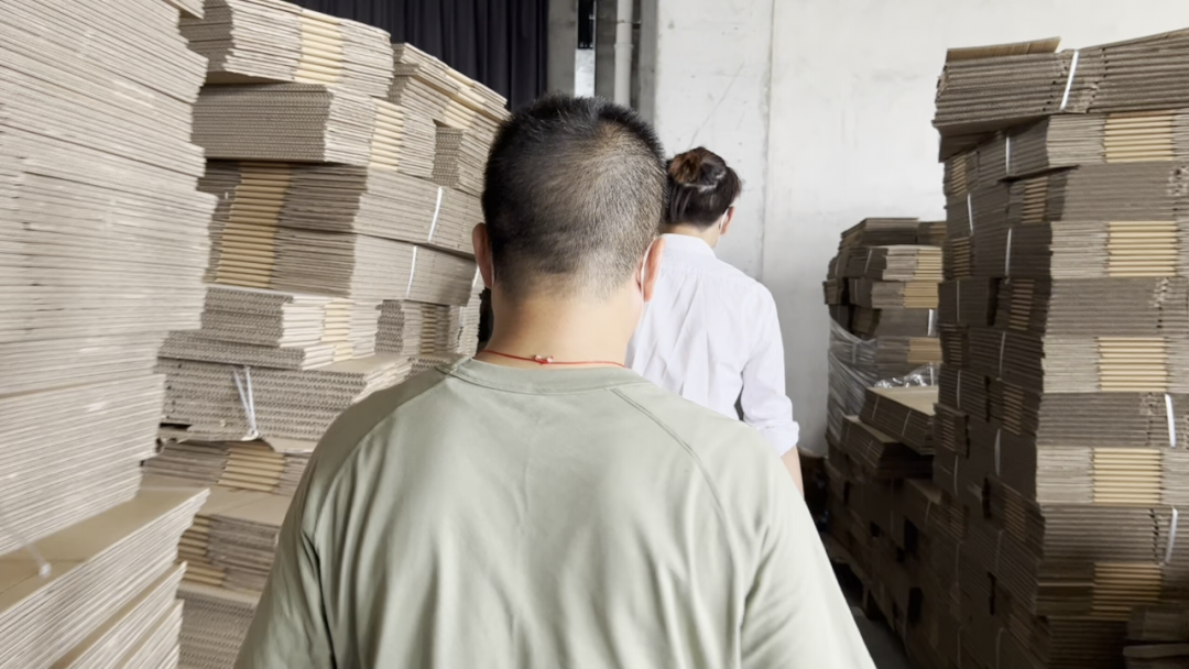 “逃生通道怎么可以设在房间里面?疏散楼梯口怎么堆这么多东西?”在仓库一侧的拐角处,检查人员还发现,疏散指示标识的方向竟然指向会议室。而另一侧的疏散楼梯口则堆放了大量纸板,留给人员逃生的通道宽度非常有限。一旦仓库发生火灾,火势蔓延扩大,可能造成人员伤亡。