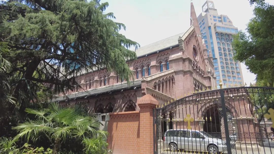 在49路汉口路江西中路公交站,一座红砖黄墙,复古主义怀旧范的公交车站静静伫立,与不远处一座古老的红砖教堂互相呼应,成为一道别样的风景,这是全新改造后的49路公交候车亭,长长的休闲座椅可以供候车的乘客或是来往的行人坐下小憩。