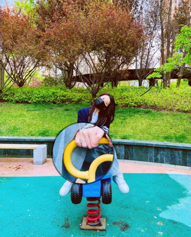 不仅如此,在张豆豆个人社交平台晒的照片中,还有细心的网友发现,其中有一张照片张豆豆坐在公园的娱乐设施上,歪头看着镜头,虽然戴着口罩但还是能看出心情很不错,最重要的是,她的无名指上戴着一枚戒指。