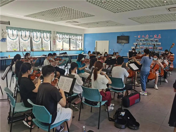 按照上海市疫情防控要求,乐团排练演出等都受到了影响。乐团利用成员们课余时间,采取线上线下多种排练方式,激发团员们的学习热情,延续他们的音乐梦想。