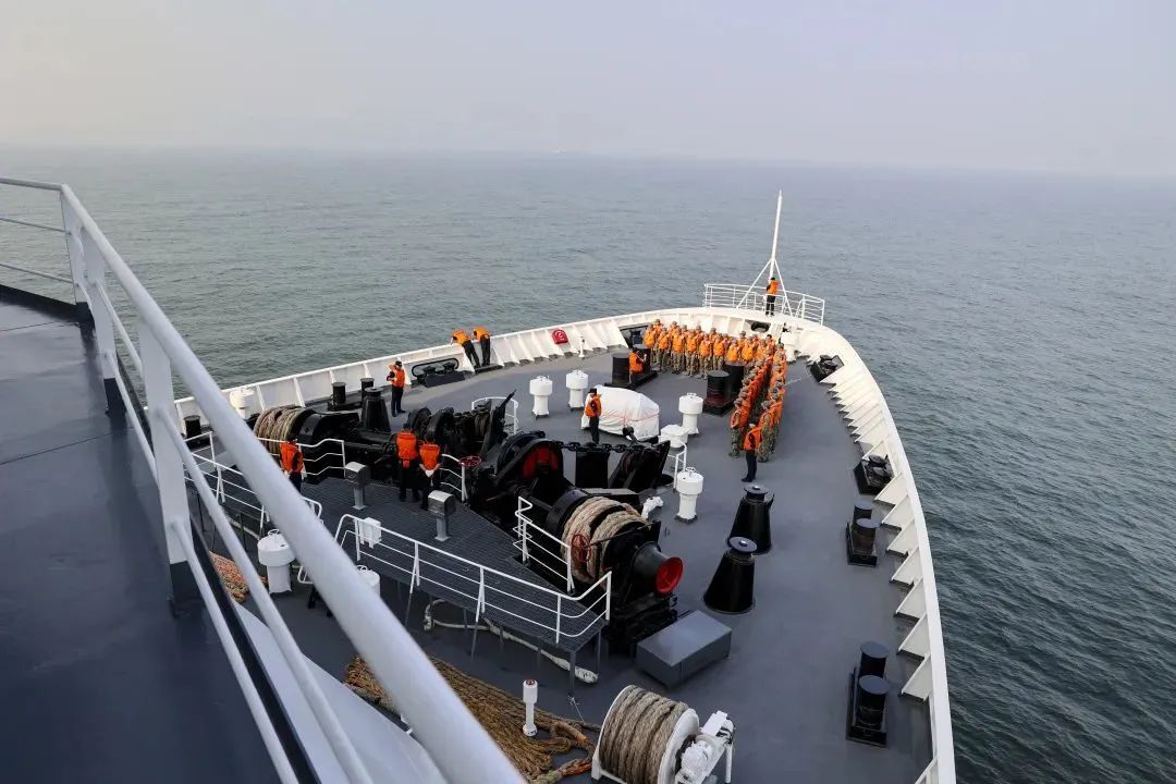 这艘排水量2万余吨的庞然大物稳稳停在海面