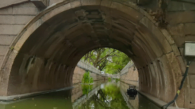 如今三座拱桥经过整修,当年的石板桥面也恢复原来的样貌。