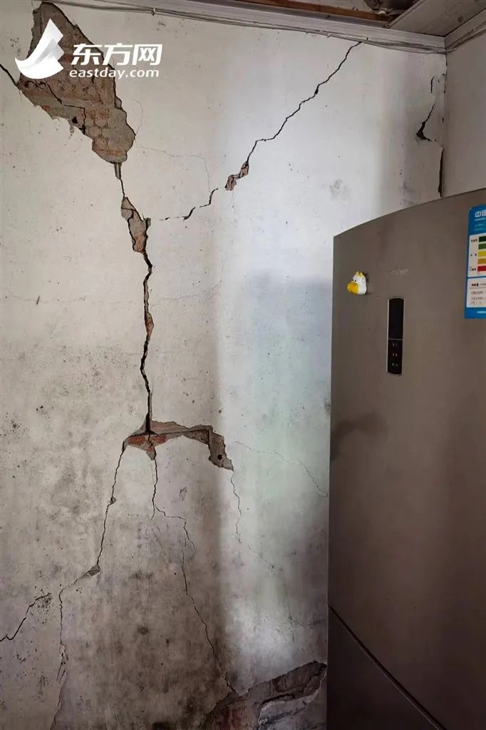 △缪小姐冰箱旁的墙上出现了多条裂缝