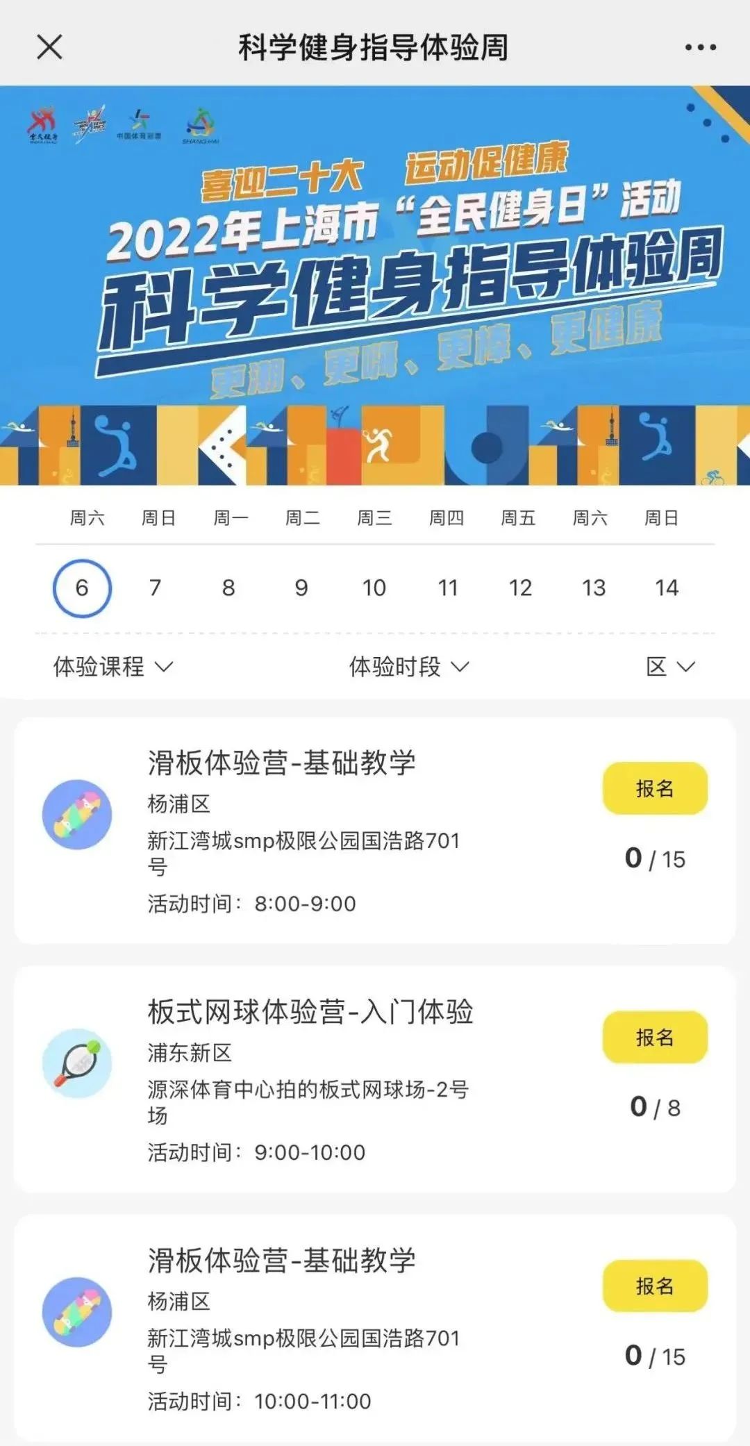 另外今年首创的科学健身指导体验周活动,设置了滑板、板式网球、飞盘、旱地冰球、模拟赛车等16个时尚体育项目,吸引市民前来体验。预计活动期间开展线下指导体验130余场,发放体验名额近2000个。线上则采用现场直播、视频展播、互动体验等形式,为各项目社会体育指导员搭建展示平台,增强市民的参与感。