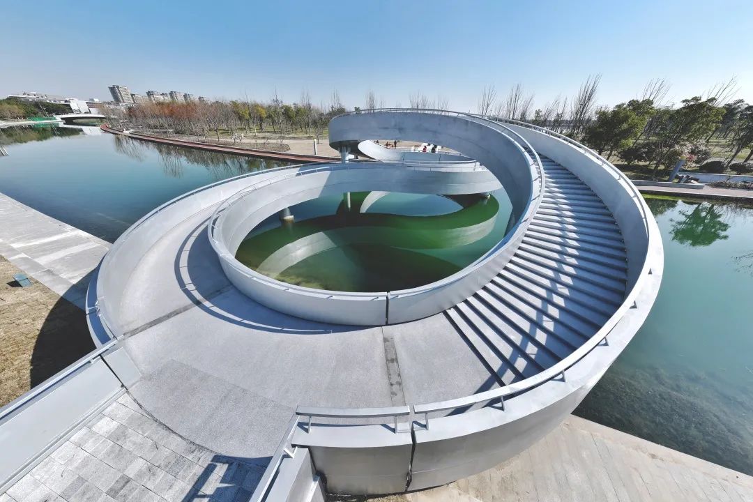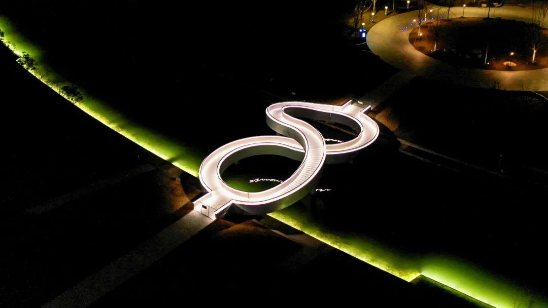 这座高颜值的“8”字形人行桥——上海之鱼1号桥,俯看有点像莫比乌斯环。