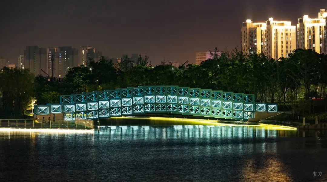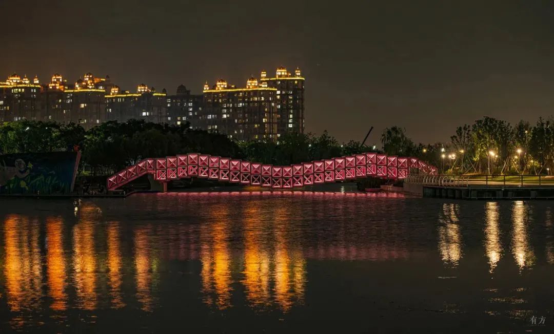 “CP感”极强的上海之鱼红、蓝桥是位于上海之鱼西南角的两座人行桥,分别连接湖堤路与年丰公园,秀竹路与龙潭公园的两座人行景观桥。