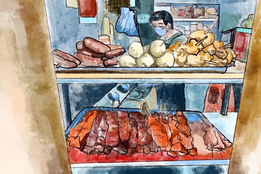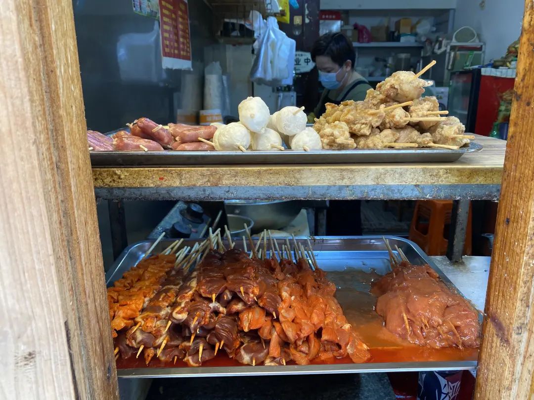 那个卖着炸物的阿姨还在这里,惊喜的是,咬一口阿姨亲手串炸的里脊肉和香酥鸡,还是记忆中的那个味道。味蕾直接唤醒了埋藏在记忆深处的许多回忆,原来那些年,你喝过的每一杯奶茶,尝过的每一口串串早已深深刻在心底。