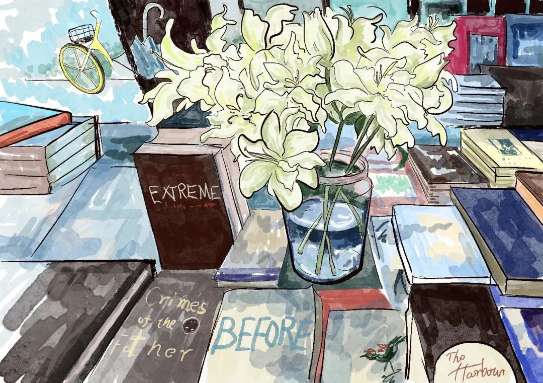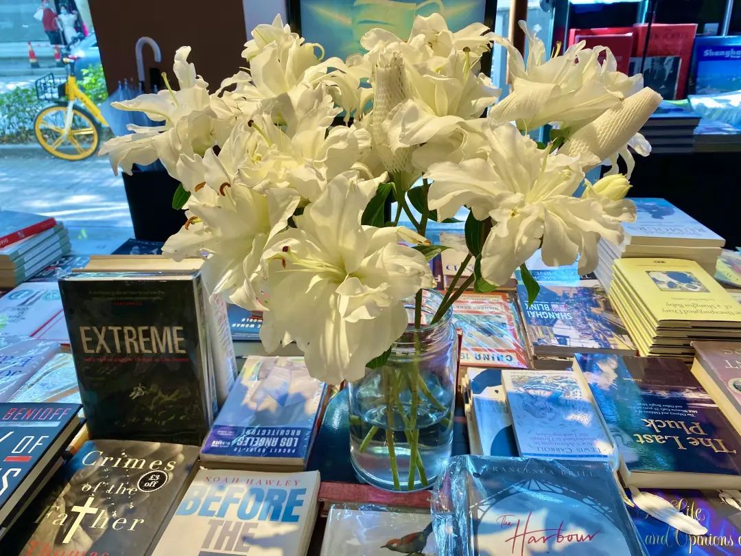 路过书店,走进书籍的海洋,暂时忘记忙碌和奔波。老板在书桌放上一大把百合,让客人在这静谧的“黄金屋”里沐浴了更多清香。