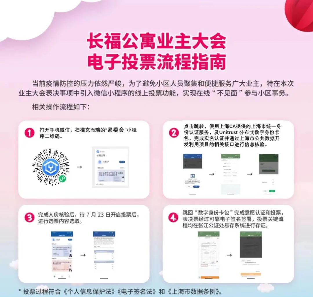 仙霞新村街道长福公寓近日启动了一场以区块链和分布式数字身份(DID)技术为支撑的业主大会线上投票工作,当日小区业主成功实现在线投票。这也标志着仙霞新村街道会同长宁业主自治研修院以及相关合作方共同申请的上海市公共数据社会化授权利用试点场景,正式开启实际运行测试。