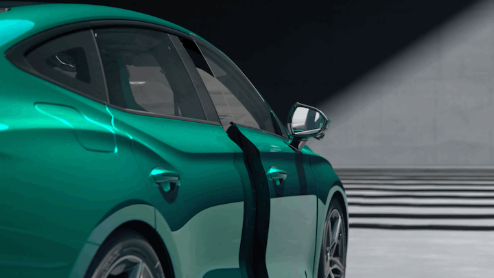 运动是一种静态的观感,也是高速的风驰电掣,更是人车一体的场景表达。日常驾驶中,尾翼收纳于掀背尾门,轻微上挑的鸭尾满足一般速度下的气动需求,当速度破百后,尾翼自动上升打开,提供更稳定的驾控表现。