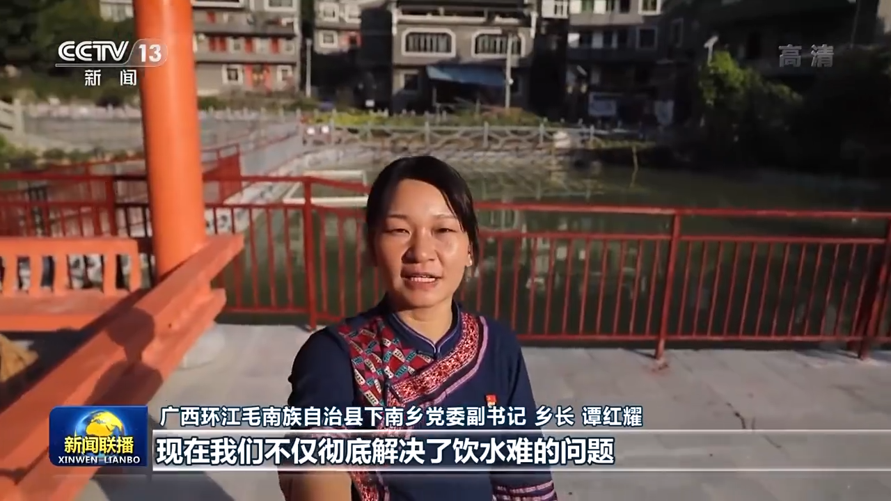 广西环江毛南族自治县下南乡党委副书记、乡长 谭红耀:现在我们不仅彻底解决了饮水难的问题,更是修建了宽敞的公路,我们的产业发展越来越好了。