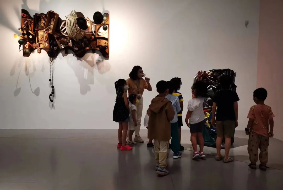 据了解,此次工作坊灵感来自于常设展“万物的声音”中,艺术家塞萨尔的作品《压缩“里卡德”》。塞萨尔将数件汽车残骸以色彩、质感等特性进行排列,随后压缩与定型,由此诞生了一件具有独特的金属质感、裂痕褶皱和丰富颜色的新现实主义雕塑作品。作为一名新现实主义艺术家,塞萨尔着重于运用现成物品的材料特性,开启雕塑艺术的新篇章。活动中,老师不仅带孩子们亲手制作,还直接走进展厅导览大师作品。